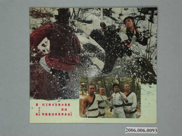 1.本物件為武僧簡介,紙質文物。由物件正面左上方可見「武僧」字樣、左下方可見「全球電影製作公司 WORLD WIDE FILM PRODUCTIONS CO.」字樣、右上方可見「GUARDS OF SHAOLIN」字樣。物件背面可見「羅銳」為領銜主演及其他主演名單。物件內頁可見「武僧」之中英文電影簡介、劇照及主要工作人員名單。