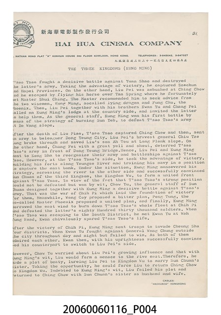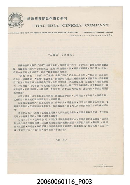 本件保存良好,單色印刷,為三國誌 孔明 電影故事電影本事。