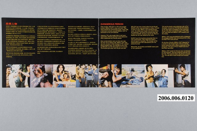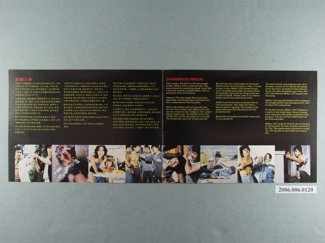 本件保存良好,雙面彩色印刷,為危險人物電影本事,由陳觀泰、林國雄、李燕燕主演,導演陳觀泰。