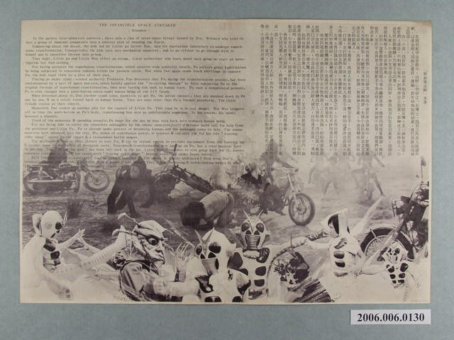 本件保存良好,雙面彩色印刷,為無敵飛金剛電影本事,由林小虎、鄔裕康、李明君、陳佩玲、馮建權、錢璐主演,導演余積廉。