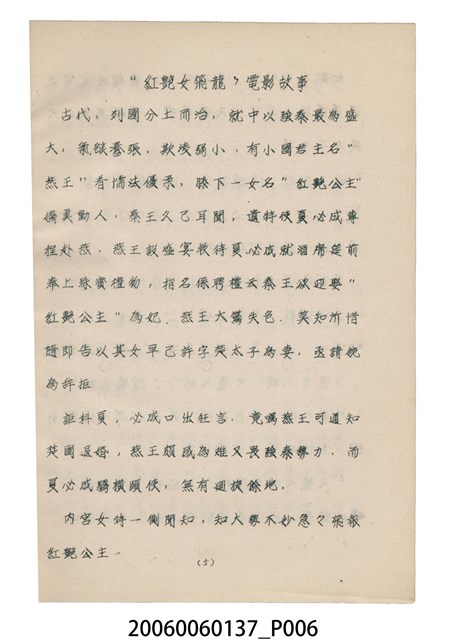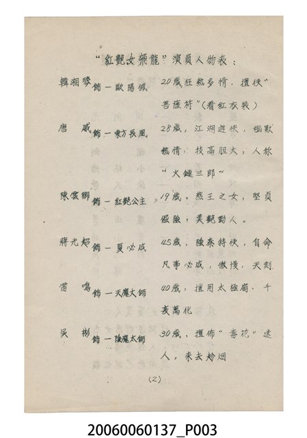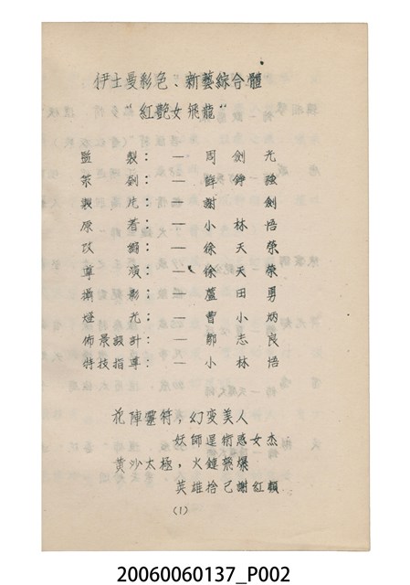 本件保存良好,雙面彩色印刷,為華國電影製片廠出品紅艷女飛龍電影本事,由韓湘琴、唐威主演,導演徐天榮。
