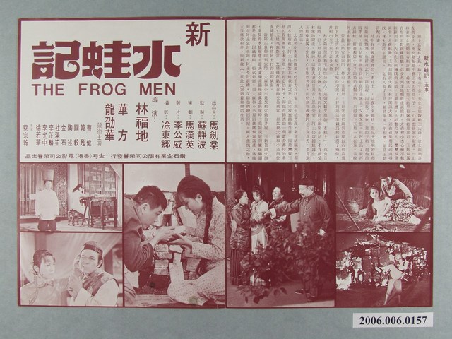 本件保存良好,雙面彩色印刷,為新水蛙記電影本事。