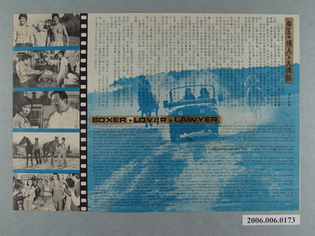 本件保存良好,雙面彩色印刷,為拳王.情人.大律師電影本事。