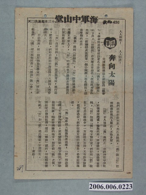 本件保存良好,雙面彩色印刷,為奔向太陽電影本事。