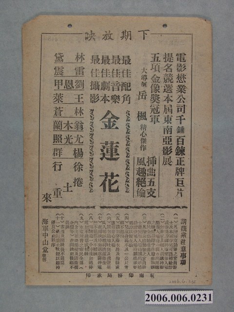 本件保存良好,雙面彩色印刷,為平岡奇俠電影本事。