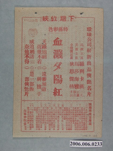 本件保存良好,雙面彩色印刷,為三雄鋤暴電影本事。