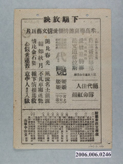 本件保存良好,雙面彩色印刷,為萬刼孤星電影本事。