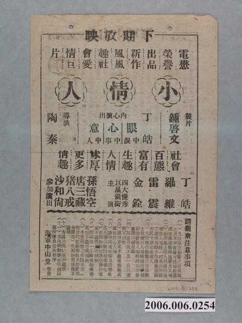 本件保存良好,雙面彩色印刷,為妾似朝陽又照君電影本事。