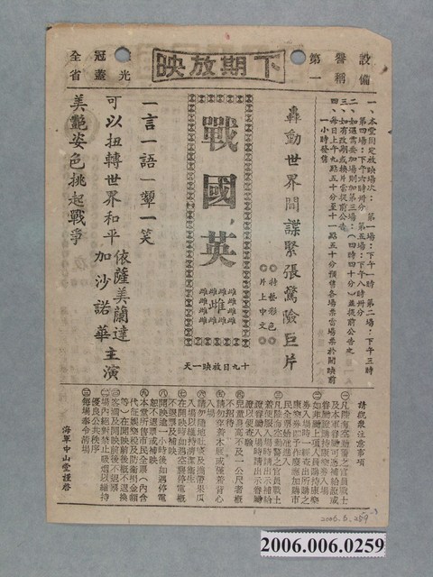 本件保存良好,雙面彩色印刷,為香港之夜電影本事。