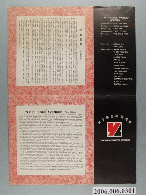 本件保存良好,雙面彩色印刷,為佛法無邊電影本事。附電影熊心豹膽廣告。