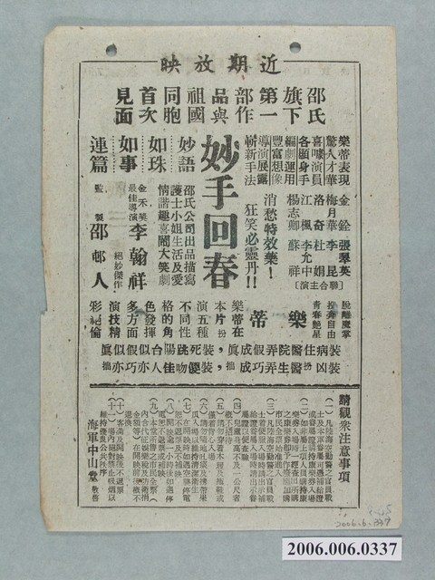 本件保存良好,雙面彩色印刷,為獨戰三虎電影本事。