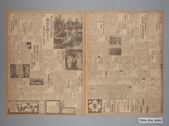 此為一紙質報刊,為1939年(昭和14年)2月15日由臺灣日日新報社發行的《臺灣日日新報》第13978號第1、2、7、8版。此物件代表的《臺灣日日新報》為臺灣日治時期,日本官方立場的報紙,也被稱為總督府的「御用報紙」。 此物件代表的《臺灣日日新報》為臺灣日治時期創辦,並偏向日本官方立場的報紙,也被稱為總督府的「御用報紙」。《臺灣日日新報》並非日治時期最早創辦的報紙,是由1896創辦的《臺灣新報》以及1897年創辦的《臺灣日報》合併而成。其後《臺灣日日新報》與《臺南新報》、《臺灣新聞》共三報被合稱「臺灣三大御用新聞」,同時也是臺灣當時最大的報社,最終在日治末期的1944年將臺北《臺灣日日新報》、《興南新聞》、臺中《臺灣新聞》、臺南《臺灣日報》、高雄《高雄新報》、花蓮《東臺灣新報》五大報合併為《臺灣新報》,而在戰後《臺灣新報》被國民政府接收改為《臺灣新生報》。(何義麟,2015:26-27)