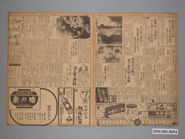 此為一紙質報刊,為1939年(昭和14年)3月7日由臺灣日日新報社發行的《臺灣日日新報》夕刊第13998號第1、2、3、4版。此物件代表的《臺灣日日新報》為臺灣日治時期,日本官方立場的報紙,也被稱為總督府的「御用報紙」。 此物件代表的《臺灣日日新報》為臺灣日治時期創辦,並偏向日本官方立場的報紙,也被稱為總督府的「御用報紙」。《臺灣日日新報》並非日治時期最早創辦的報紙,是由1896創辦的《臺灣新報》以及1897年創辦的《臺灣日報》合併而成。其後《臺灣日日新報》與《臺南新報》、《臺灣新聞》共三報被合稱「臺灣三大御用新聞」,同時也是臺灣當時最大的報社,最終在日治末期的1944年將臺北《臺灣日日新報》、《興南新聞》、臺中《臺灣新聞》、臺南《臺灣日報》、高雄《高雄新報》、花蓮《東臺灣新報》五大報合併為《臺灣新報》,而在戰後《臺灣新報》被國民政府接收改為《臺灣新生報》。(何義麟,2015:26-27)