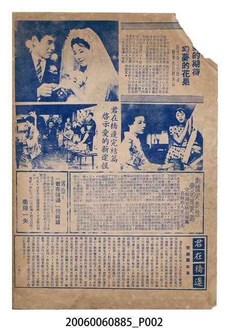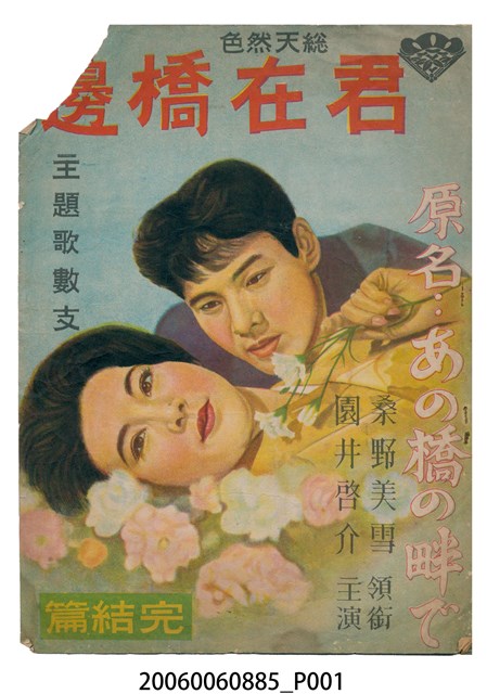 本件保存良好,雙面彩色印刷,為君在橋邊電影本事。