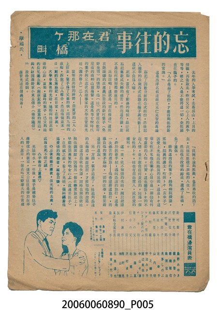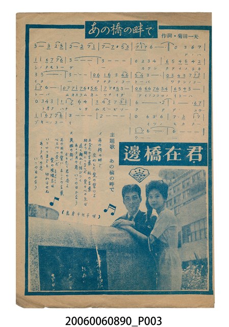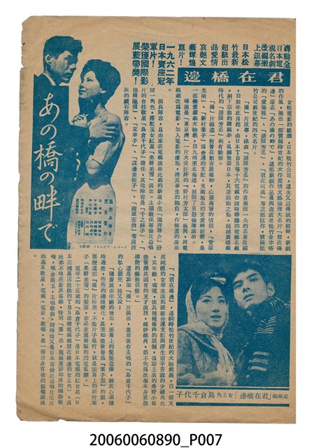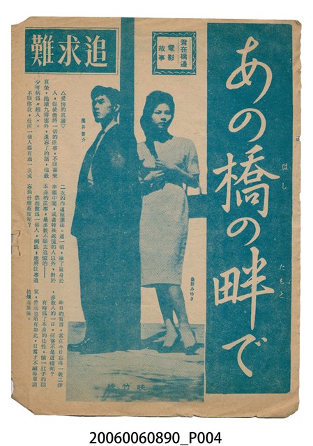 本件保存良好,雙面彩色印刷,為君在橋邊電影本事。