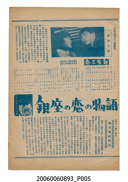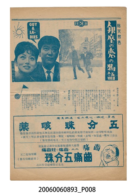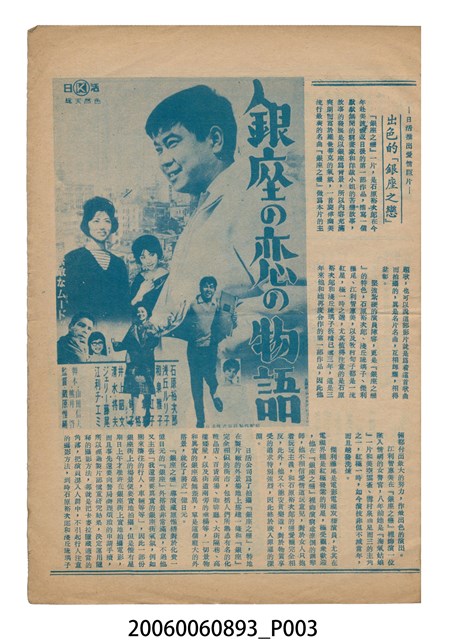 本件保存良好,雙面彩色印刷,為銀座之恋 銀座の恋の物語電影本事。