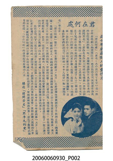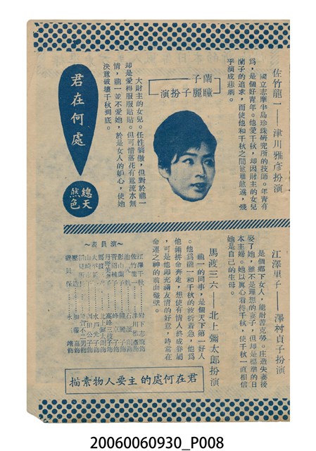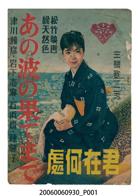 本件保存良好,雙面彩色印刷,為君在何處あの波の果てまで電影本事。