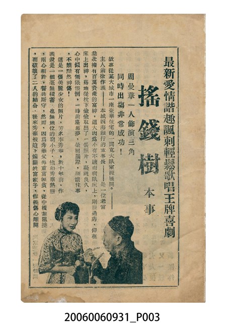 本件保存良好,雙面彩色印刷,為搖錢樹電影本事。