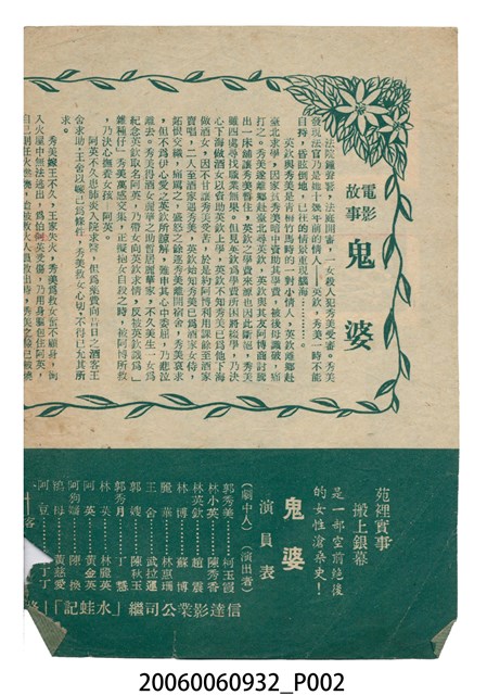 本件保存良好,雙面彩色印刷,為鬼婆電影本事。