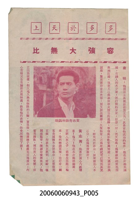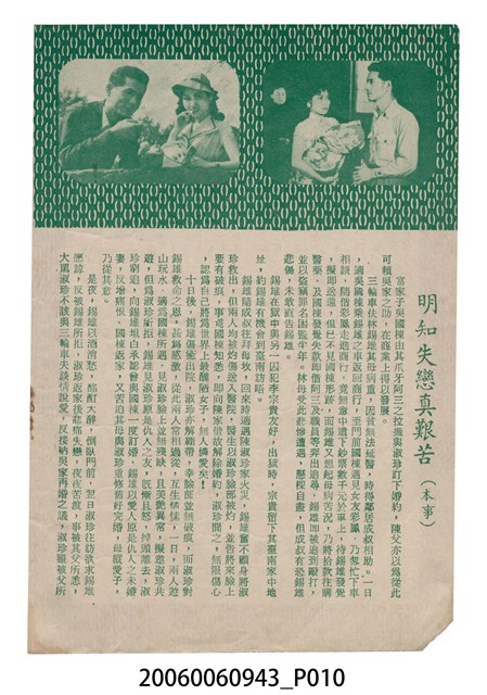 本件保存良好,雙面彩色印刷,為明知失恋真艱苦電影本事。