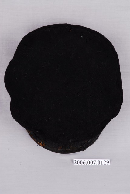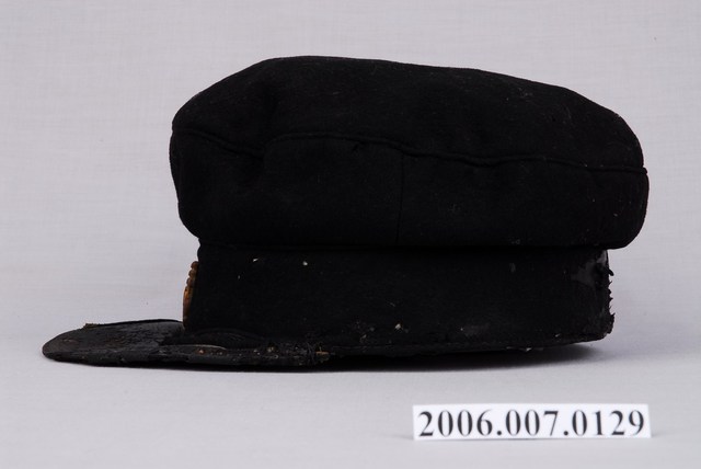 本件為日治時期學生制服帽,材質推測為羅紗(ラシャ,毛料),發行時間不詳。帽面為黑色,帽沿則是黑色,材質推測為皮革材質,整體形制為圓帽(丸帽),帽沿上方別有校徽(按:據校徽「三中」字樣,推測可能為臺北第三中學校之學校帽)。