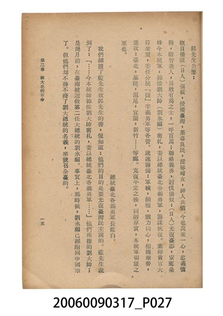 殖民地下臺灣讀書人的典型-黃玉齋,國史館臺灣文獻館, https://www.th.gov.tw/epaper/site/page/43/557(瀏覽日期:2020/4/7)若林正丈,2020。臺灣抗日運動史研究,新北:木馬文化,頁:14-68。黃秀政,2015。1895年乙未割臺:臺灣歷史的轉捩點,臺灣學通訊,87,頁:4-7。