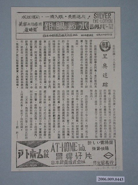 本件保存良好,為萬國戲院出品,失樂園 The Caretakers電影廣告單。電影由勞勃史貝克 Robert Stack、寶莉貝根 Polly Bergen、瓊克勞馥 Joan Crawford、珍妮斯佩琪 Janis Paige、黛安娜麥萍 Diane McBain主演,導演為 Hall Bartlett。電影單其他部分為電影里奧追蹤電影本事。