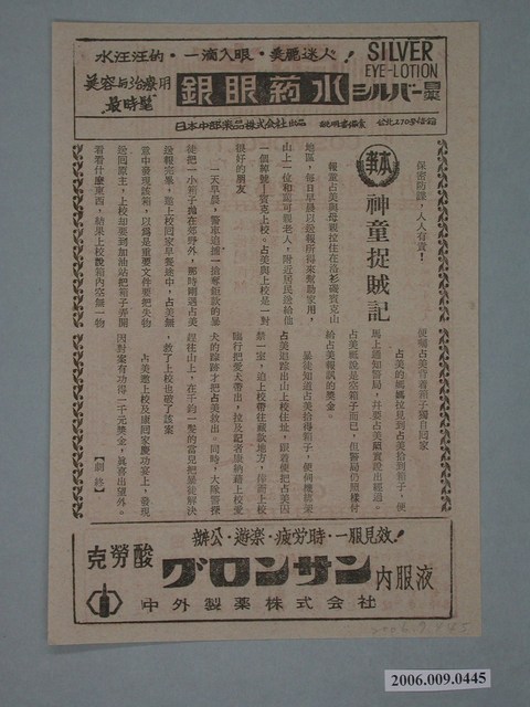 本件保存良好,為萬國戲院出品,孤獨俠 Duello nel Texas電影廣告單。電影由李察哈里遜 Richard Harrison主演,導演為 Richard Blasco。電影單其他部分為電影神童捉賊記電影本事。