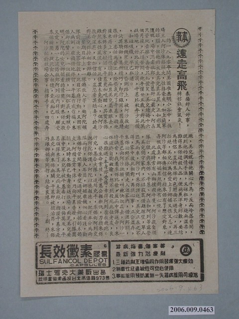 本件保存良好,為大世界戲院出品,七巨人 I sette gladiatori電影廣告單。電影由李察哈里遜 Richard Harrison主演,導演為 Pedro Lazaga。電影單其他部分為電影遠走高飛電影本事。