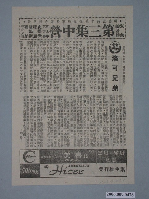本件保存良好,為萬國戲院出品,魚雷艇一0九号 PT 109電影廣告單。電影由克利夫羅勃遜 Cliff Robertson主演,導演為 Leslie H. Martinson。電影單其他部分為電影第三集中營、洛可兄弟電影本事。