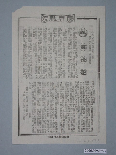 本件保存良好,為慶昇戲院出品,夏日痴魂Suddenly, Last Summer電影廣告單。電影由伊麗莎白泰勒Elizabeth Taylor、凱瑟琳赫本Katharine Hepburn、蒙哥馬利克利夫Montgomery Clift主演,導演為約瑟夫孟基維斯Joseph L. Mankiewicz。電影單其他部分為尋母記電影本事