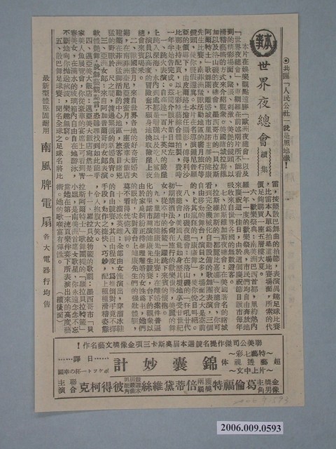 本件保存良好,黑白雙面印刷,為王老五天堂電影本事,由鮑勃霍伯、拉娜透納主演。其他部分為世界夜總會續集電影本事、電影巴格達大盜、錦囊妙計宣傳。