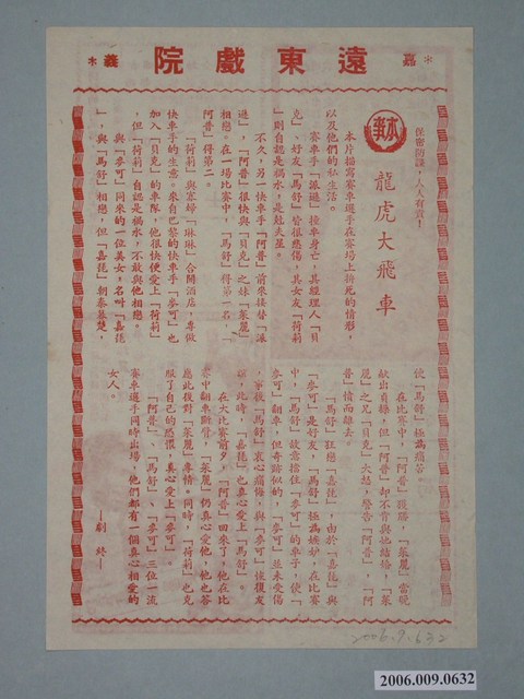 本件保存良好,為遠東戲院出品,芳鄰良緣 Promise Her Anything電影廣告單。電影由李絲麗卡儂 Leslie Caron、華倫比提 Warren Beatty主演,導演為 Arthur Hiller。電影單其他部分為電影戰地江湖奇士、美國國家安全局、海兵特攻隊、龍虎大飛車電影本事。