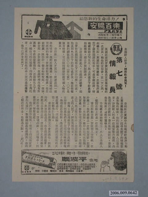 本件保存良好,為萬國戲院出品,見習醫生The Interns電影廣告單。電影由米契考倫Michael Callan、詹姆斯麥可亞瑟James MacArthur主演,導演為 David Swift。電影單其他部分為電影第七號情報員電影本事。