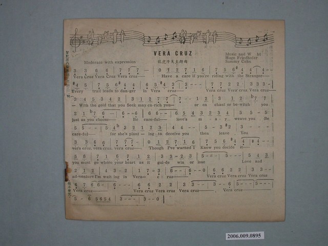 本件保存良好,雙面印刷,為龍虎干戈Vera Cruz電影本事,由賈利古柏 Gary Cooper、畢蘭卡斯特Burt Lancaster主演,導演為Robert Aldrich。