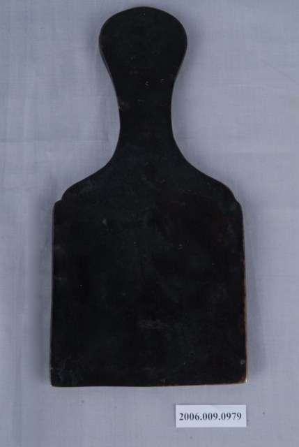 本物件為屏東市仁和製藥株式會社數藥丸器具。器具似鏟子,有握柄,長方形鏟面上有90個圓洞。握柄處有屏東市仁和製藥株式會社與昭和五年(1930)字樣。