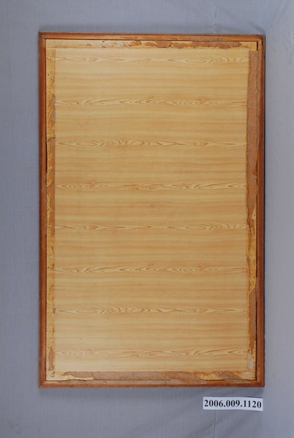 本件為觀音畫像,觀音左手持經書,盤腿坐於蓮花座上,左右為善財和龍女,龍女上方有隻啣著念珠的白鸚鵡。畫像裱框。觀音畫像為臺灣漢人傳統民宅神明廳常見的神明圖像,成為家宅守護神