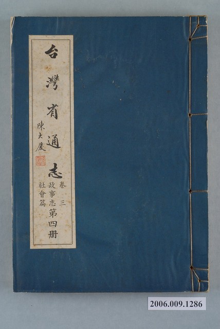 1.本物件為臺灣省文獻委員會出版的《臺灣省通志》卷三政事志社會篇第四冊,採線裝裝訂。封面、封底底圖均為藍色。本志分為社會行政、人民團體、社會事業、合作事業等4章,本冊內容為第4章合作事業起頭,至同章第2節光復以來之合作事業前半部。2.1948年6月,臺灣省通志館成立,由林獻堂任館長,主持臺灣省通志纂修事宜。1949年,臺灣省通志館改為臺灣省文獻委員會(簡稱省文獻會);1951年,內政部核備臺灣省通志稿纂修綱目,開始撰稿。先後在1960年完成大部分的篇章(斷限至戰後初期),以及1967年完成增修(斷限至1961年)。由於1960年的原修稿與1967年的增修稿作者眾多,難以連貫,相互牴觸之處不少,以致難以付梓,1966年,省文獻會成立整理小組,展開通志稿整修計畫,調整原志綱目,制定整修辦法,以省文獻會主任委員張炳楠為監修,副主任委員李汝和、林衡道為主修兼總編纂,開始整修計畫。1973年6月,臺灣省通志全書完成出版,不含卷首、卷尾,共10卷、10志、78篇、146冊,總字數約1,877萬字。本物件政事志社會篇共有5冊,於1971年6月30日出版。