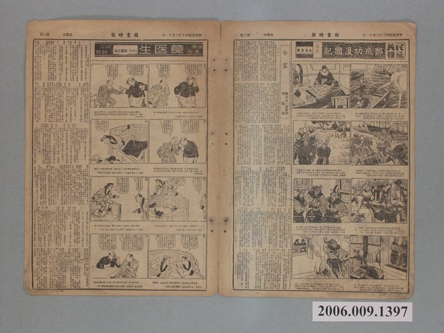此物件為《中央日報》的姊妹報《圖畫時報》,為1949年底同《中央日報》來臺後一同創辦,由梁又銘所創辦,由於《中央日報》為中國國民黨的黨報,另外梁中銘與梁又銘在中國即是幫國民黨做文宣工作,所以報紙上的漫畫大多為「反共抗俄」的作品,以貶低毛澤東、史達林、中國共產黨的作品為主,另有連載作品如梁又銘的〈土包子下江南〉、牛哥李費蒙的〈牛伯伯打游擊〉、梁中銘的〈黃興傳〉等等。 臺灣漫畫發展主要始於1940年代日治末期,當時臺灣一群對漫畫有著興趣的青年聚集在一起且都參加過日本的漫畫函授學校,這些青年後自稱為「新高漫畫集團」,而其中最重要的成員為葉宏甲,他以「諸葛四郎」的創作者而成名,此為臺灣漫畫之濫觴,後這批「新高漫畫集團」的作者,在戰後於《新新》雜誌上發表漫畫。在二二八事件後《新新》雜誌被迫停刊,此時期的漫畫也由從中國來臺的移民主導,並以「反共抗俄」的政治宣傳漫畫為主,《中央日報》的漫畫專欄即是如此。在1950年代中後期到1960年代初,雖臺灣盜版漫畫極多,但漫畫的創作也是數量可觀,直到1966年正式實施《編印連環圖畫輔導辦法》,使臺灣漫畫受到大量審查,這樣的政策使日本盜版漫畫更加猖獗,並促使臺灣本土漫畫受到嚴重打擊,直到1990年代才逐漸復原。