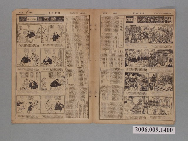 此物件為《中央日報》的姊妹報《圖畫時報》,為1949年底同《中央日報》來臺後一同創辦,由梁又銘所創辦,由於《中央日報》為中國國民黨的黨報,另外梁中銘與梁又銘在中國即是幫國民黨做文宣工作,所以報紙上的漫畫大多為「反共抗俄」的作品,以貶低毛澤東、史達林、中國共產黨的作品為主,另有連載作品如梁又銘的〈土包子下江南〉、牛哥李費蒙的〈牛伯伯打游擊〉、梁中銘的〈黃興傳〉等等。 臺灣漫畫發展主要始於1940年代日治末期,當時臺灣一群對漫畫有著興趣的青年聚集在一起且都參加過日本的漫畫函授學校,這些青年後自稱為「新高漫畫集團」,而其中最重要的成員為葉宏甲,他以「諸葛四郎」的創作者而成名,此為臺灣漫畫之濫觴,後這批「新高漫畫集團」的作者,在戰後於《新新》雜誌上發表漫畫。在二二八事件後《新新》雜誌被迫停刊,此時期的漫畫也由從中國來臺的移民主導,並以「反共抗俄」的政治宣傳漫畫為主,《中央日報》的漫畫專欄即是如此。在1950年代中後期到1960年代初,雖臺灣盜版漫畫極多,但漫畫的創作也是數量可觀,直到1966年正式實施《編印連環圖畫輔導辦法》,使臺灣漫畫受到大量審查,這樣的政策使日本盜版漫畫更加猖獗,並促使臺灣本土漫畫受到嚴重打擊,直到1990年代才逐漸復原。