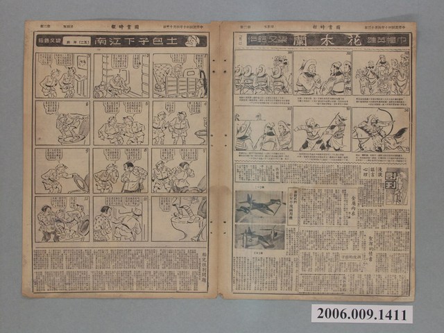 此物件為《中央日報》的姊妹報《圖畫時報》,為1949年底同《中央日報》來臺後一同創辦,由梁又銘所創辦,由於《中央日報》為中國國民黨的黨報,另外梁中銘與梁又銘在中國即是幫國民黨做文宣工作,所以報紙上的漫畫大多為「反共抗俄」的作品,以貶低毛澤東、史達林、中國共產黨的作品為主,另有連載作品如梁又銘的〈土包子下江南〉、牛哥李費蒙的〈牛伯伯打游擊〉、梁中銘的〈黃興傳〉等等。 臺灣漫畫發展主要始於1940年代日治末期,當時臺灣一群對漫畫有著興趣的青年聚集在一起且都參加過日本的漫畫函授學校,這些青年後自稱為「新高漫畫集團」,而其中最重要的成員為葉宏甲,他以「諸葛四郎」的創作者而成名,此為臺灣漫畫之濫觴,後這批「新高漫畫集團」的作者,在戰後於《新新》雜誌上發表漫畫。在二二八事件後《新新》雜誌被迫停刊,此時期的漫畫也由從中國來臺的移民主導,並以「反共抗俄」的政治宣傳漫畫為主,《中央日報》的漫畫專欄即是如此。在1950年代中後期到1960年代初,雖臺灣盜版漫畫極多,但漫畫的創作也是數量可觀,直到1966年正式實施《編印連環圖畫輔導辦法》,使臺灣漫畫受到大量審查,這樣的政策使日本盜版漫畫更加猖獗,並促使臺灣本土漫畫受到嚴重打擊,直到1990年代才逐漸復原。