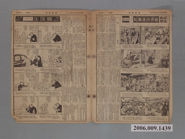 此物件為《中央日報》的姊妹報《圖畫時報》,為1949年底同《中央日報》來臺後一同創辦,由梁又銘所創辦,由於《中央日報》為中國國民黨的黨報,另外梁中銘與梁又銘在中國即是幫國民黨做文宣工作,所以報紙上的漫畫大多為「反共抗俄」的作品,以貶低毛澤東、史達林、中國共產黨的作品為主,另有連載作品如梁又銘的〈土包子下江南〉、牛哥李費蒙的〈牛伯伯打游擊〉、梁中銘的〈黃興傳〉等等。 臺灣漫畫發展主要始於1940年代日治末期,當時臺灣一群對漫畫有著興趣的青年聚集在一起且都參加過日本的漫畫函授學校,這些青年後自稱為「新高漫畫集團」,而其中最重要的成員為葉宏甲,他以「諸葛四郎」的創作者而成名,此為臺灣漫畫之濫觴,後這批「新高漫畫集團」的作者,在戰後於《新新》雜誌上發表漫畫。在二二八事件後《新新》雜誌被迫停刊,此時期的漫畫也由從中國來臺的移民主導,並以「反共抗俄」的政治宣傳漫畫為主,《中央日報》的漫畫專欄即是如此。在1950年代中後期到1960年代初,雖臺灣盜版漫畫極多,但漫畫的創作也是數量可觀,直到1966年正式實施《編印連環圖畫輔導辦法》,使臺灣漫畫受到大量審查,這樣的政策使日本盜版漫畫更加猖獗,並促使臺灣本土漫畫受到嚴重打擊,直到1990年代才逐漸復原。