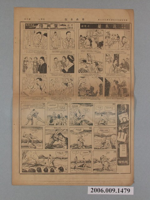 此物件為《中央日報》的專欄之一《漫畫半週刊》,為1950年承繼《中央日報》的姊妹報《漫畫時報》所開設的專欄,由梁又銘、梁中銘主編。由於《中央日報》為中國國民黨的黨報,另外梁中銘與梁又銘在中國即是幫國民黨做文宣工作,所以報紙上的漫畫大多為「反共抗俄」的作品,以貶低毛澤東、史達林、中國共產黨的作品為主,另有連載作品如梁又銘的〈土包子下江南〉、牛哥李費蒙的〈牛伯伯打游擊〉、梁中銘的〈黃興傳〉等等。 臺灣漫畫發展主要始於1940年代日治末期,當時臺灣一群對漫畫有著興趣的青年聚集在一起且都參加過日本的漫畫函授學校,這些青年後自稱為「新高漫畫集團」,而其中最重要的成員為葉宏甲,他以「諸葛四郎」的創作者而成名,此為臺灣漫畫之濫觴,後這批「新高漫畫集團」的作者,在戰後於《新新》雜誌上發表漫畫。在二二八事件後《新新》雜誌被迫停刊,此時期的漫畫也由從中國來臺的移民主導,並以「反共抗俄」的政治宣傳漫畫為主,《中央日報》的漫畫專欄即是如此。在1950年代中後期到1960年代初,雖臺灣盜版漫畫極多,但漫畫的創作也是數量可觀,直到1966年正式實施《編印連環圖畫輔導辦法》,使臺灣漫畫受到大量審查,這樣的政策使日本盜版漫畫更加猖獗,並促使臺灣本土漫畫受到嚴重打擊,直到1990年代才逐漸復原。
