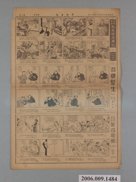 此物件為《中央日報》的專欄之一《漫畫半週刊》,為1950年承繼《中央日報》的姊妹報《漫畫時報》所開設的專欄,由梁又銘、梁中銘主編。由於《中央日報》為中國國民黨的黨報,另外梁中銘與梁又銘在中國即是幫國民黨做文宣工作,所以報紙上的漫畫大多為「反共抗俄」的作品,以貶低毛澤東、史達林、中國共產黨的作品為主,另有連載作品如梁又銘的〈土包子下江南〉、牛哥李費蒙的〈牛伯伯打游擊〉、梁中銘的〈黃興傳〉等等。 臺灣漫畫發展主要始於1940年代日治末期,當時臺灣一群對漫畫有著興趣的青年聚集在一起且都參加過日本的漫畫函授學校,這些青年後自稱為「新高漫畫集團」,而其中最重要的成員為葉宏甲,他以「諸葛四郎」的創作者而成名,此為臺灣漫畫之濫觴,後這批「新高漫畫集團」的作者,在戰後於《新新》雜誌上發表漫畫。在二二八事件後《新新》雜誌被迫停刊,此時期的漫畫也由從中國來臺的移民主導,並以「反共抗俄」的政治宣傳漫畫為主,《中央日報》的漫畫專欄即是如此。在1950年代中後期到1960年代初,雖臺灣盜版漫畫極多,但漫畫的創作也是數量可觀,直到1966年正式實施《編印連環圖畫輔導辦法》,使臺灣漫畫受到大量審查,這樣的政策使日本盜版漫畫更加猖獗,並促使臺灣本土漫畫受到嚴重打擊,直到1990年代才逐漸復原。