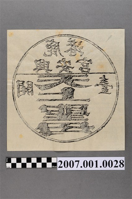神明印記主要在標示主神名諱或宮廟名稱,常用於旗幟、衣服之上,以印記蓋於繡布上,然後再加以刺繡裝飾,印記也可用於相關文書之註記。