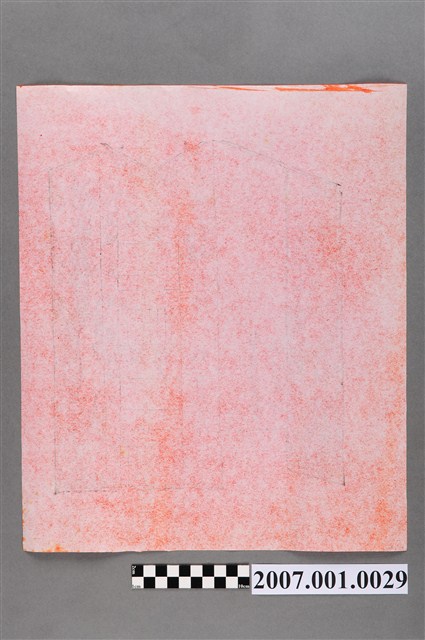 本件合婚庚帖以單一墨色印製於紅色紙張上,畫面區分為左右兩半。右半部上方作兩枝交叉之寶戟,各掛一面方旗,旗面上分書「捷報」、「貴子」,其下分為兩欄,右欄上方右邊直框內書「乾造月日時」為書寫男方生辰八字處,左邊分為六格,第一格「龍圖」,第二格「元」,第三、四格空白,為八字星名註記處,第四格右邊一「歲」,其下又分為八欄,空白處為流年運勢註記處。下方欄位與上方相同,右邊直框內書「坤造月日時」,左邊對應上方欄位為「鳳閣」、「元」、「歲」等。左欄直書「陽氣」、「陰胎」、「演卦三元合婚」,右側直框內為降龍紋。左半部一欄下方兩行文字「筆資每名各四角」為合婚酬勞,「張必達評」為擇日師姓名,其左方直框內為鳳凰牡丹紋,其下方有兩行白文「千載成歲」、「百年偕老」。右下角有鉛筆註記「1996.1楊永智送」,為版畫或印版之原收藏者。