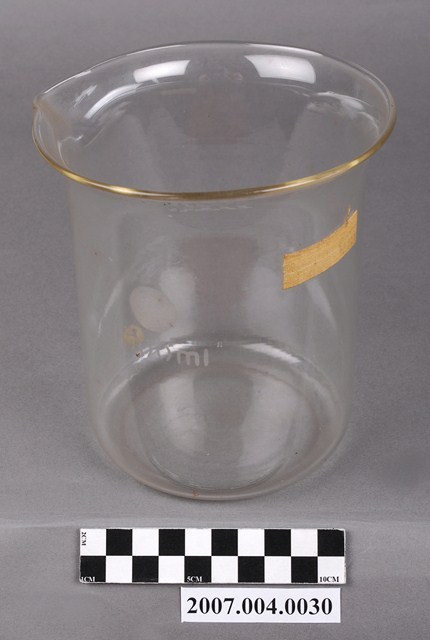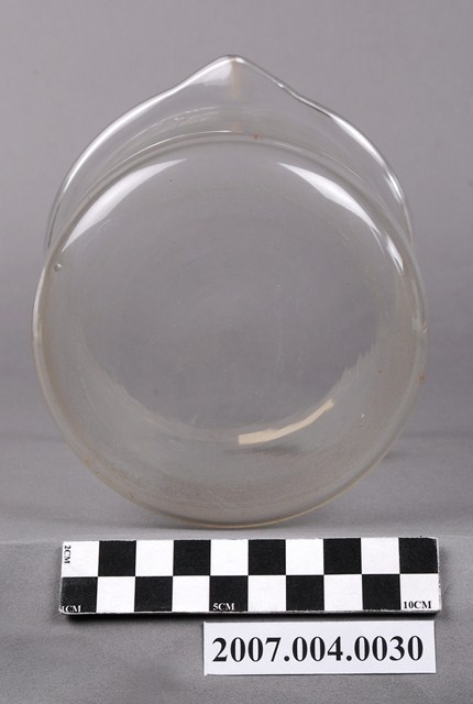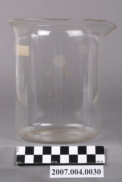 本物件為燒杯。燒杯為透明無色,有倒口設計,杯身上印有1000ml字樣。