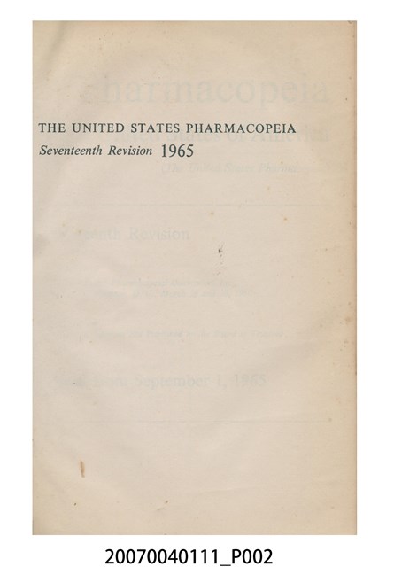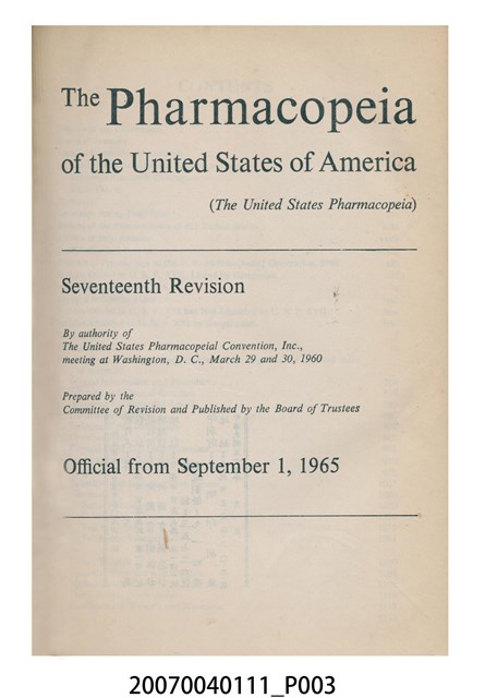 United States Pharmacopeial Convention出版《The Pharmacopeia of the United States of America》1965年第17次修訂版