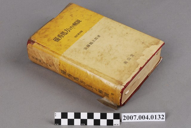 本物件為安藤鶴太郎著《優秀處方とその解說》改訂第30版。書皮為紅色硬殼,外層有紙製書套,上印有優秀處方とその解說、改訂第30版、安藤鶴太郎著、南山堂字樣。目錄共分成49個沒有分章節的標題以及附錄,標題例有鎮靜劑催眠劑、鎮吐劑、抗癌症劑、抗生物質劑等。本書由株式會社南山堂,於西元1972年7月15日出版,在臺灣是由進學書局發行。