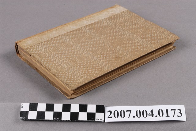 本物件為不破龍登代等編《藥劑學實驗》。外封佈滿花紋,無任何字樣;書背字跡已模糊。扉頁可見其編輯人員包含不破龍登代、仙石忠良、塚本長太郎、竹中英雄。本書為昭和35年8月30日初版發行,內容包含基礎編、實際編(分成調劑の部、製藥の部散)、藥劑學的試驗法等內容。